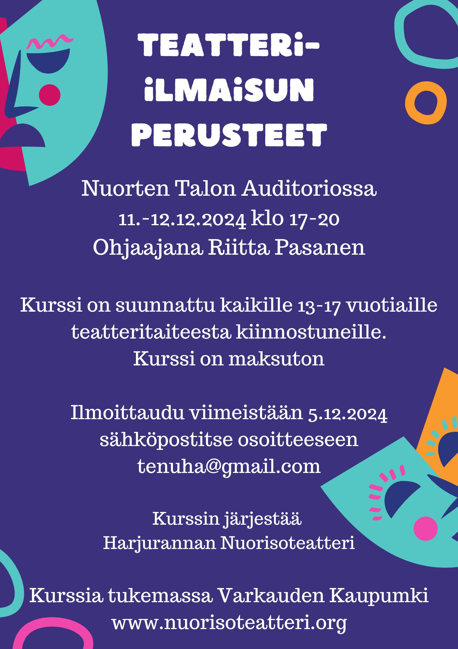 Kurssin järjestää Harjurannan Nuorisoteatteri Ry